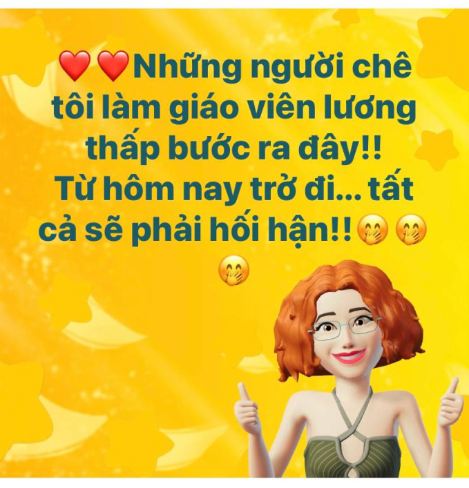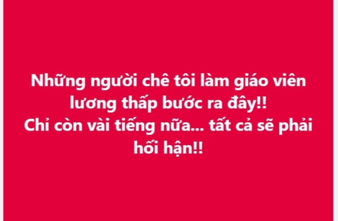 Trong một group của cộng đồng giáo viên tiểu học với hơn 300 nghìn người tham gia, bài đăng của một giáo viên vào tối muộn ngày 30/6 đã nhận được đông đảo sự quan tâm của dân tình. Cụ thể, bài đăng như sau: “Những người chê tôi làm giáo viên lương thấp bước ra đây. Chỉ còn vài tiếng nữa, tất cả sẽ phải… hối hận”.
